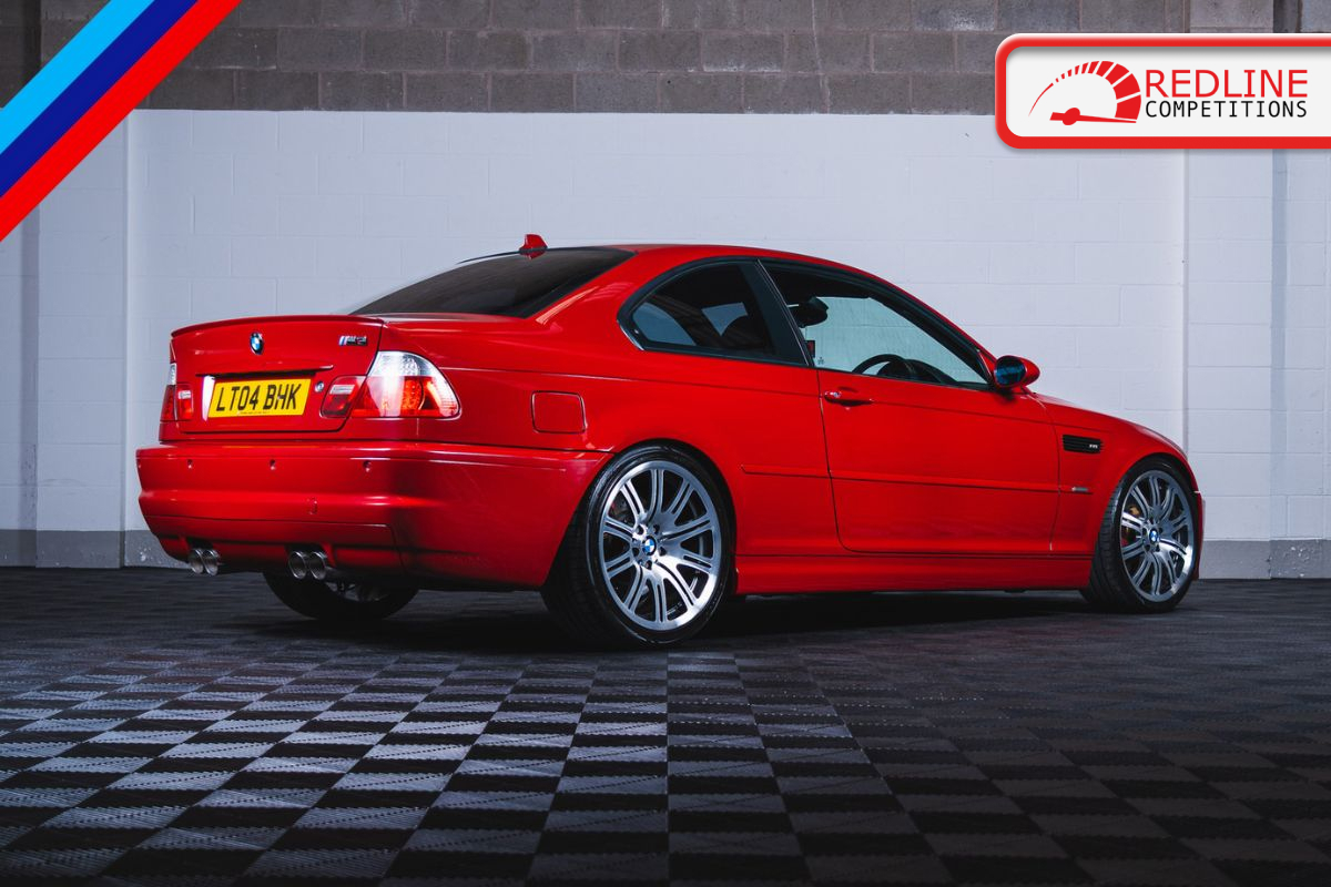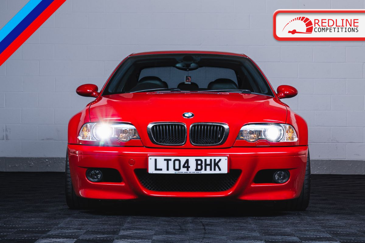 2004 BMW E46 M3 in stunning Imola Red. 93k miles with just 3 former keepers & comprehensive service history file. The car has been tastefully upgraded with HSD fully adjustable coilovers, K sport big brake upgrade, scorpion cat back stainless steel exhaust and adjustable rear camber arms.