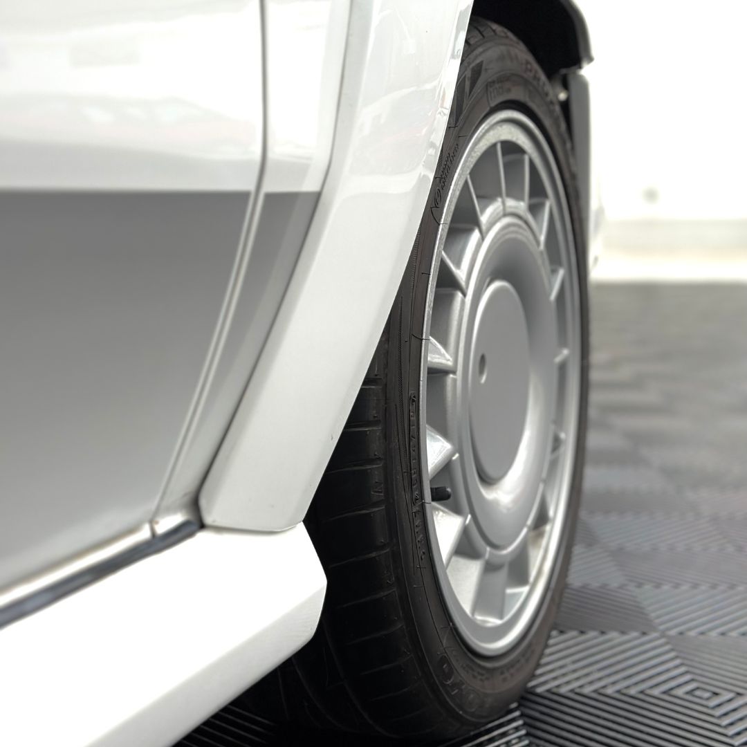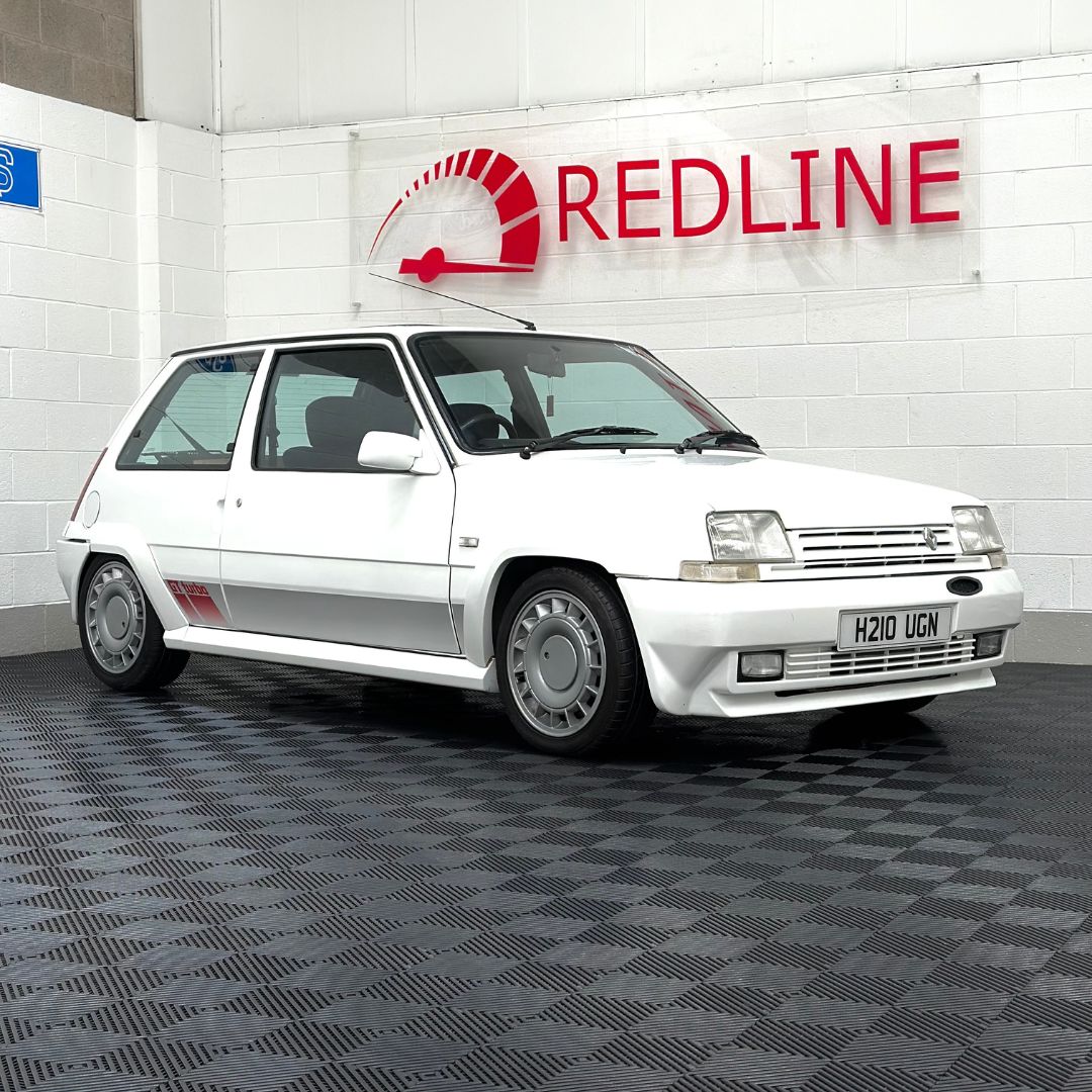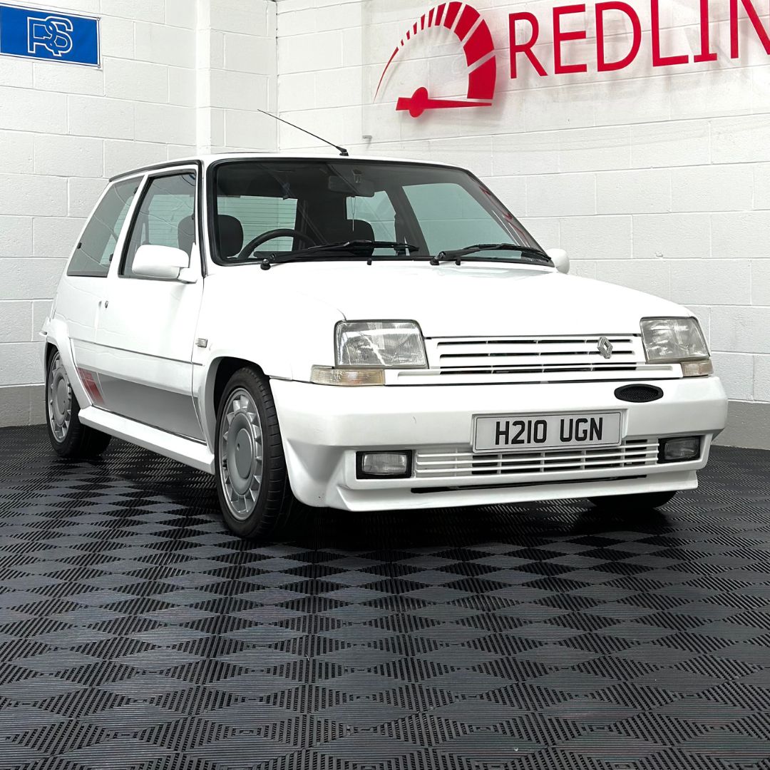 The Renault 5 is in great condition, gleaming in white riding on the turbines.