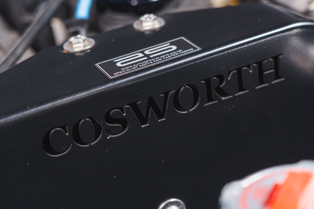 YB turbo Cosworth, fully rebuilt with new bearings, block rebored with over size pistons, 4WD exhaust manifold, 2WD inlet manifold, GS Motorsport 270bhp Stage 1 chip, standard T3 turbo, custom AIRTEC Motorsport intercooler and alloy radiator, machined cam cover, custom exhaust system, custom fuel tank with sender and gauge, AS breather kit and cambelt cover