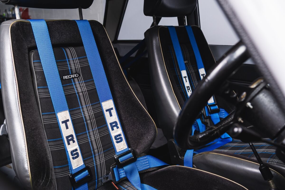 Retrimmed Recaro seats, TRS harnesses, half roll cage, custom carpet and rear trim.
