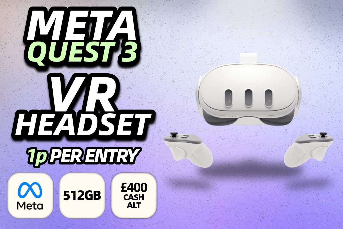 You could win a Meta Quest 3 512gb VR Set for just 1p per entry!