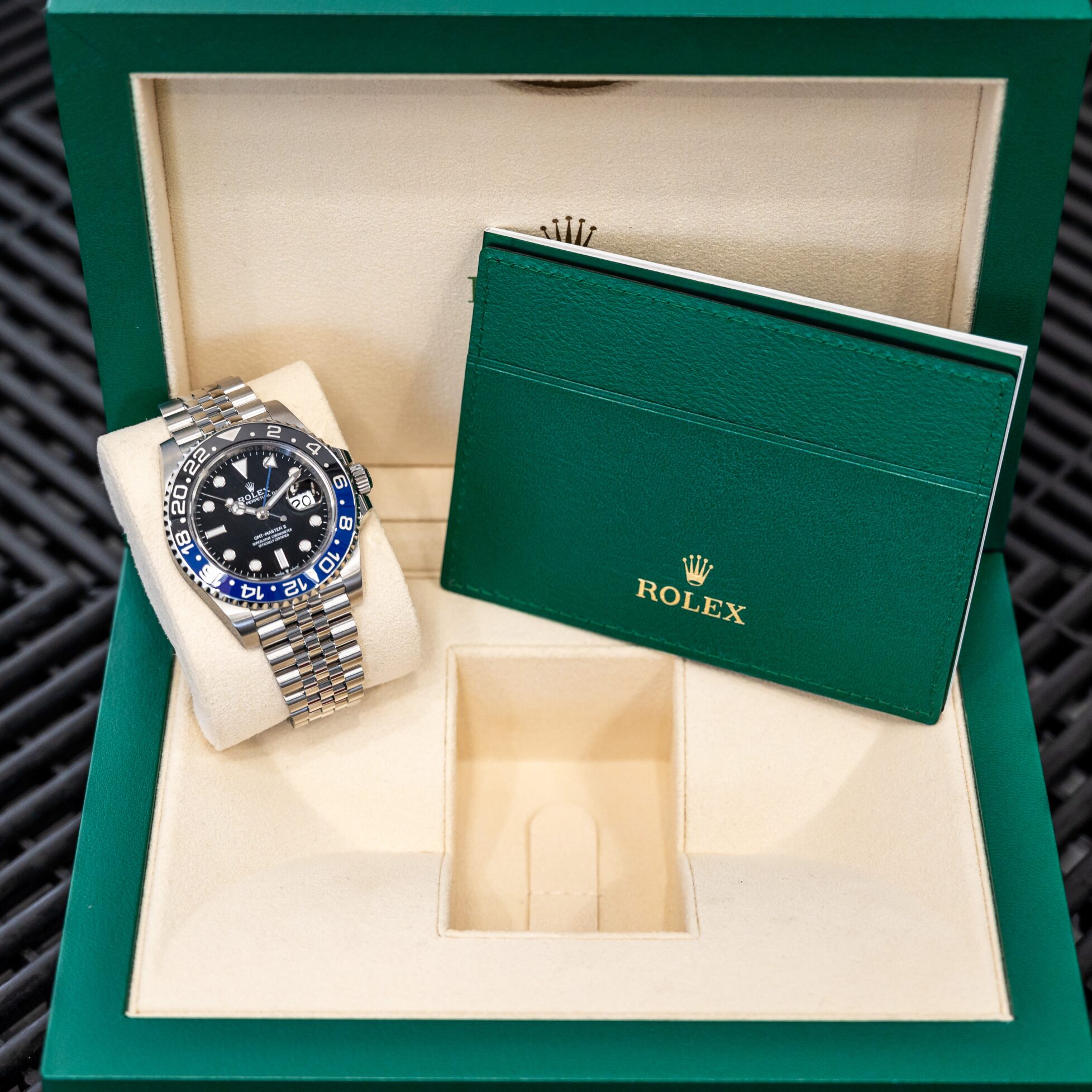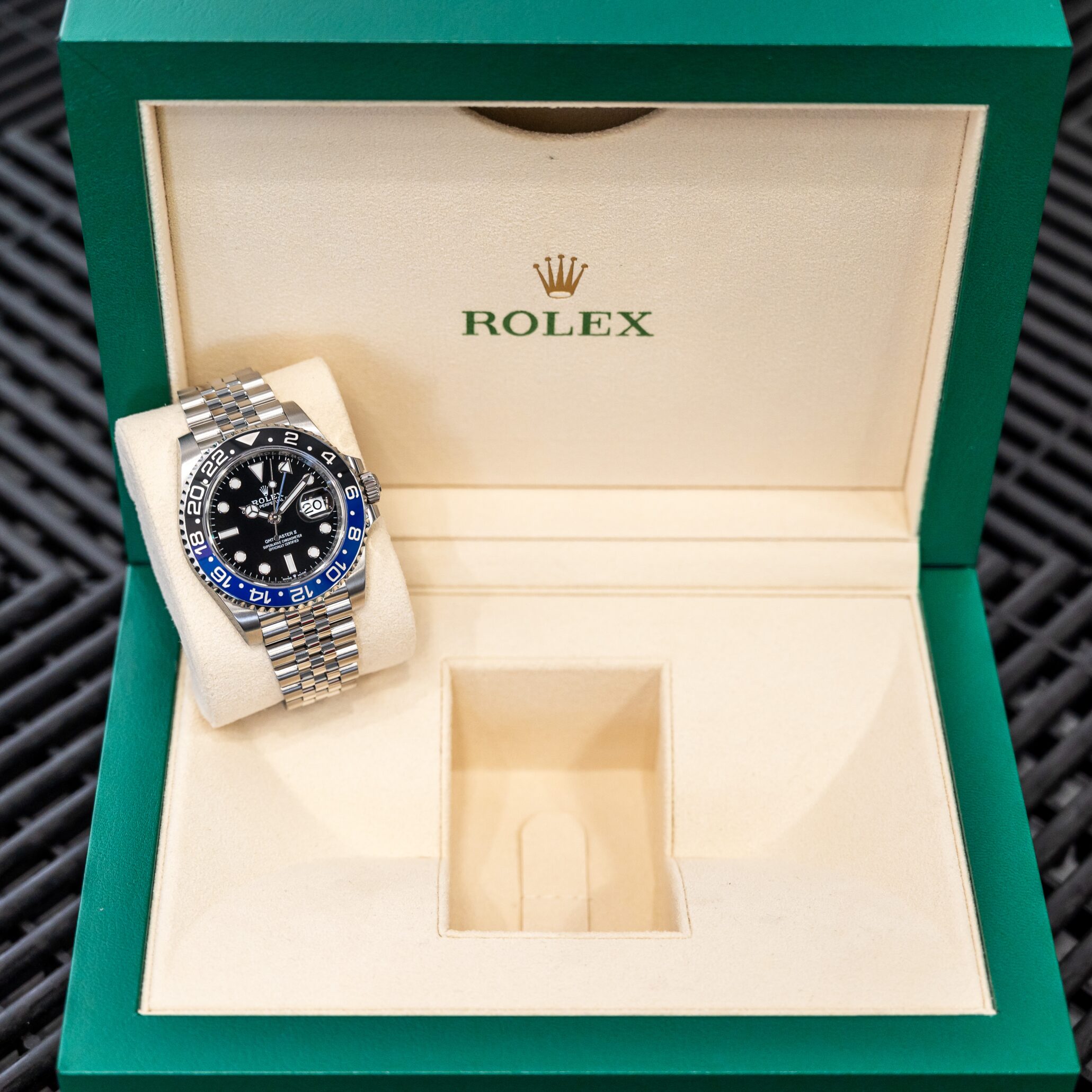 The Rolex Batgirl has been part of the coveted GMT master series since 2019. The black and blue Cerachrom bezel not only give this model it’s name, but also gives the Rolex Batgirl its unique charm.